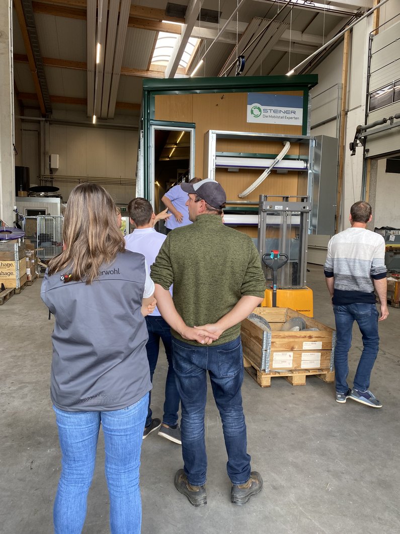 Am zweiten Tag stand die Firma Steiner Automation auf dem Programm. Nach einer Einführung durch Herrn Steiner und Herrn Eichelsberger erhielten die Teilnehmer der Exkursion spannende Einblicke in den Bau von Mobilställen für Legehennen. Zudem wurde eines der größeren Modelle auf einem nahegelegenen Betrieb besichtigen. Das Unternehmen blickt auf über 40 Jahre Erfahrung zurück und ist auf die Herstellung von Mobilställen sowie auf maßgeschneiderte technische Lösungen für stationäre Ställe spezialisiert. Es wurde viel technisches Know-How ausgetauscht.