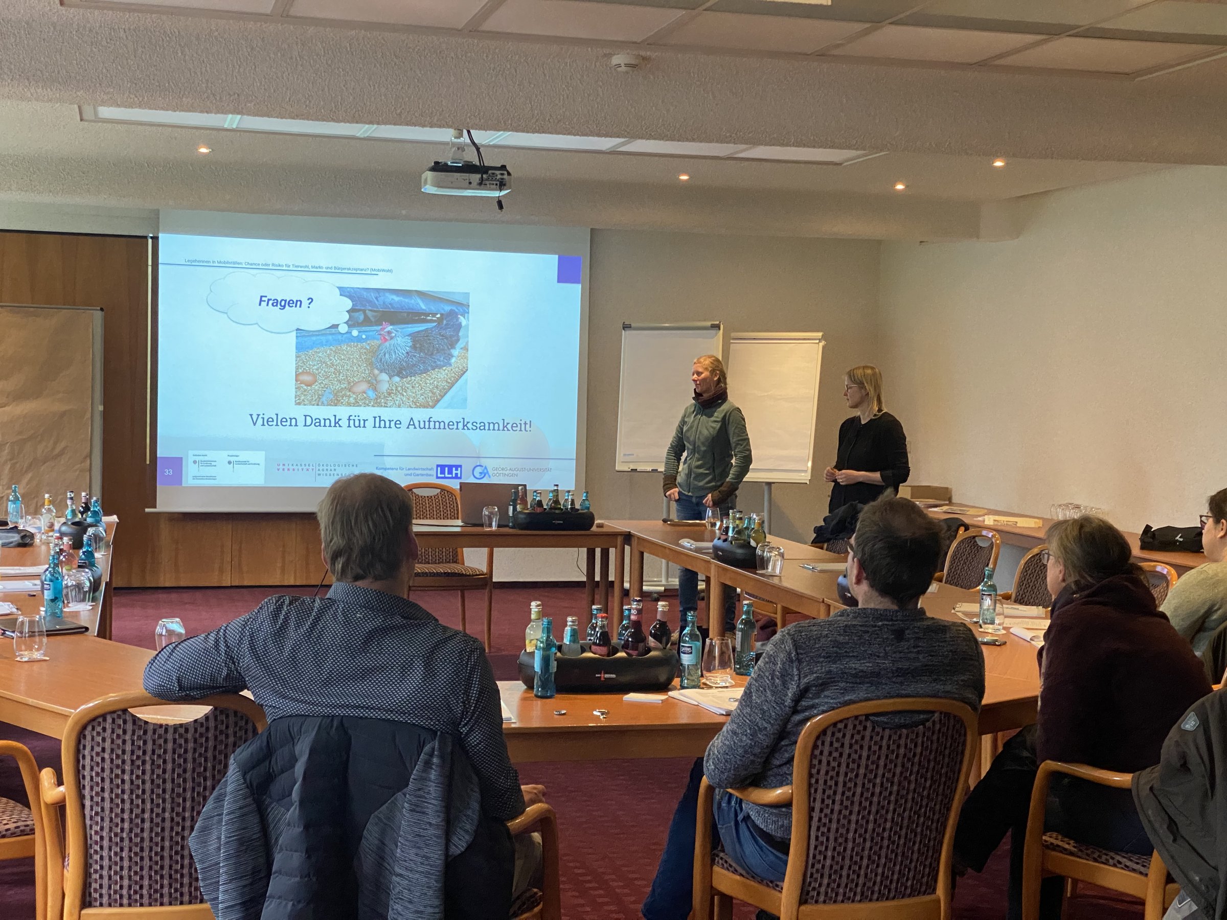 Christiane Keppler startete den fachlichen Input unter dem Thema „Verlängerte Nutzungsdauer bei Legehennen – Was ist zu beachten?“. Das Thema der verlängerten Nutzungsdauer ist auf Grund der wirtschaftlichen Lage für viele Landwirte sehr aktuell. Dies führte zu einem regen Austausch und Diskussionen auf fachlicher Ebene zwischen den Landwirten und viel thematischem Input von Frau Keppler. Abends fand dann ein Austausch zur aktuellen Lage in der Legehennenhaltung statt.