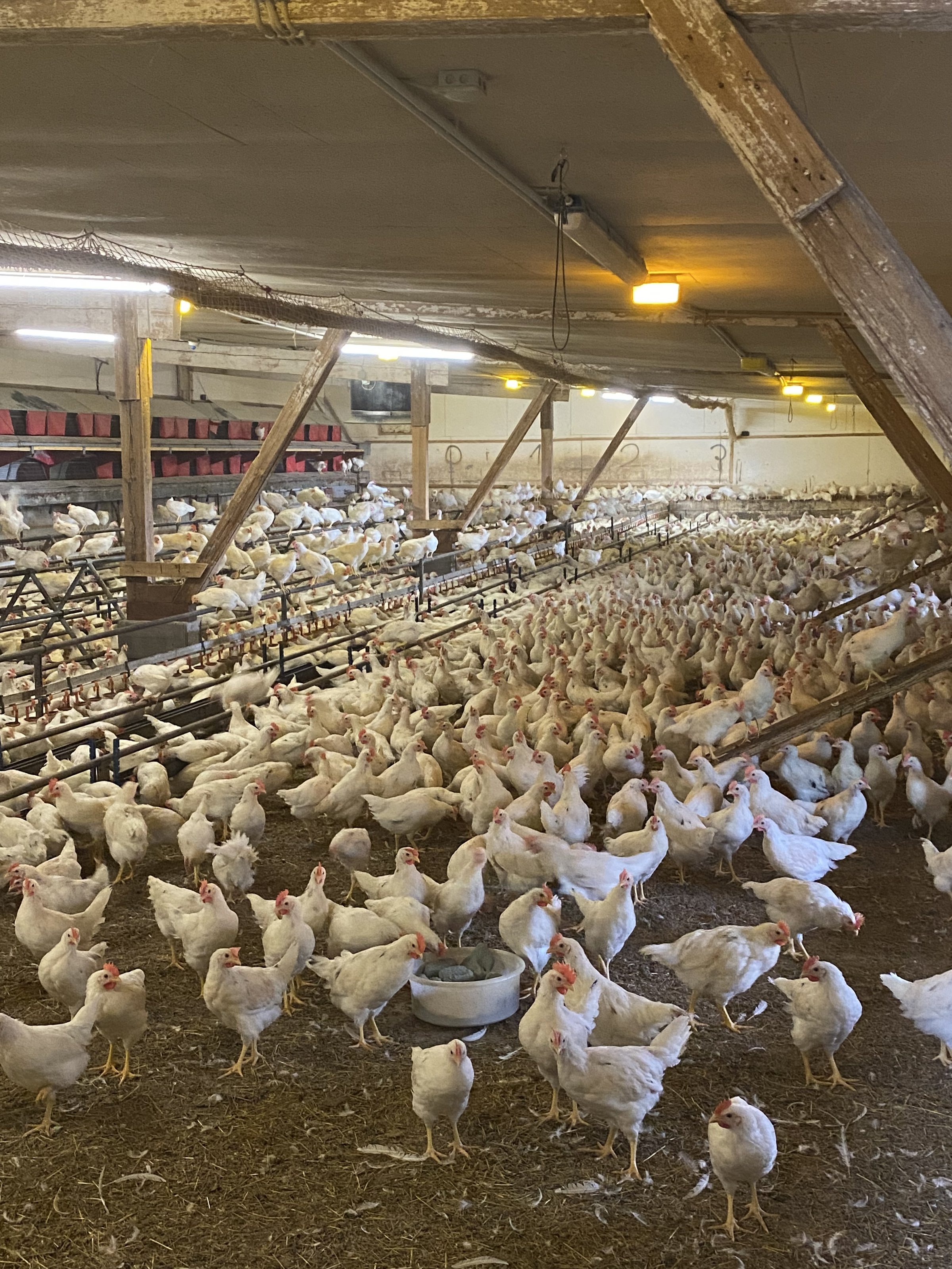 Der zweite Tag begann mit einer Vorstellung des Projektes MobiWohl von Nadine Lang und Katrin Dorkewitz. In dem Projekt MobiWohl geht es um die Haltung von Legehennen in Mobilställen hinsichtlich des Tierwohls, der Tiergesundheit, aber auch der Umwelt, der Vermarktung und der Bürgerakzeptanz. Nach dem morgendlichen Input machte sich die Gruppe auf den Weg und fuhr zu Fabian Häde um den Mustergeflügelhof Leonhard Häde zu besichtigen. Fabian Häde ist Betriebsleiter des seit 1927 bestehenden Familienunternehmens. Der Betrieb wird seit 1975 biologisch bewirtschaftet und hat eine lange Tradition in der Produktion von Eiern. Fabian zieht seine eigenen Tiere groß, vermarktet Eier, setzt sich aber auch mit der Aufzucht, Haltung und Vermarktung von Brüderhähnen auseinander. Ein neuerer Ansatz von ihm ist die Haltung von Zweinutzungshühnern.