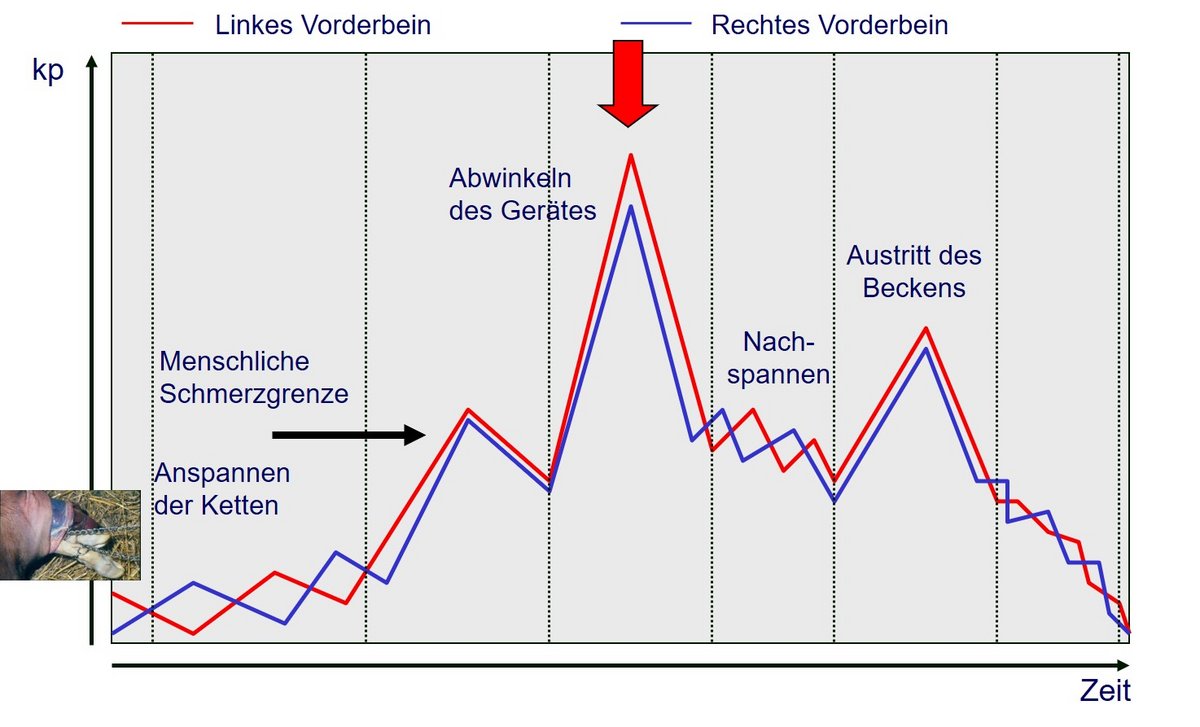- beim Austreten der Brust Zug in Richtung Euter ändern