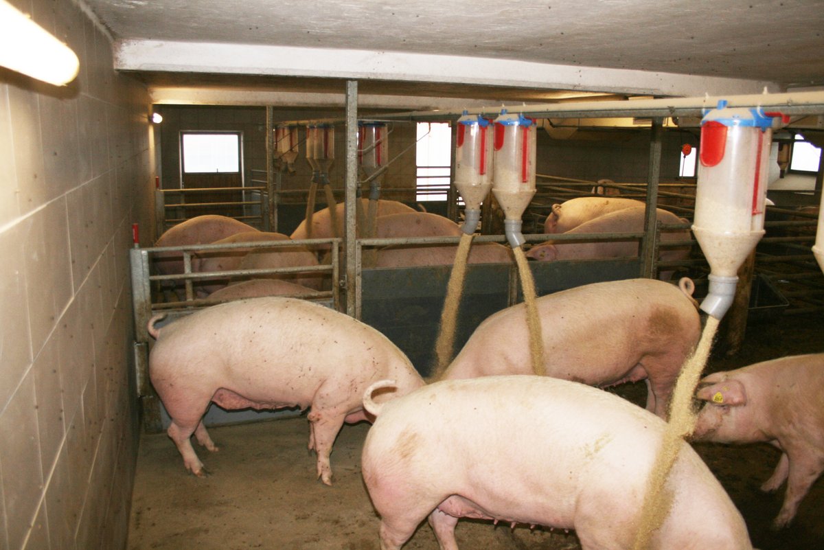 Entscheidet sich ein Betrieb für die Bodenfütterung, wählt er die natürlichste Form der Futteraufnahme, bei der die Tiere einen Teil ihrer natürlichen Verhaltensweisen ausleben können. Die Sauen sind länger mit der Futteraufnahme beschäftigt und können alle gleichzeitig auf dem Boden im Futter wühlen und Reste suchen (Abb. 9). Es bietet sich ausschließlich die Trockenfütterung dafür an, die z. B. über Rohrketten, Schnecken oder von Hand möglich ist.