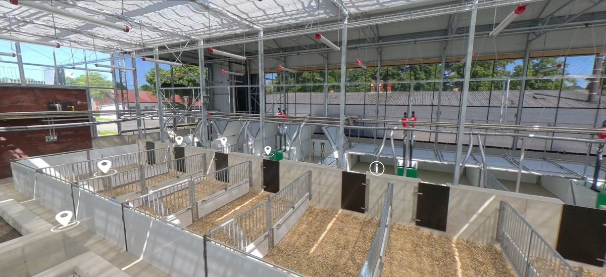 Eine Besichtigung des Stalls der Zukunft ist jeder Zeit über die Besucherplattform auf Haus Düsse möglich. Zusätzlich können die Stallsysteme in einem virtuellen Stallrundgang mit erklärenden Texten entdeckt werden.