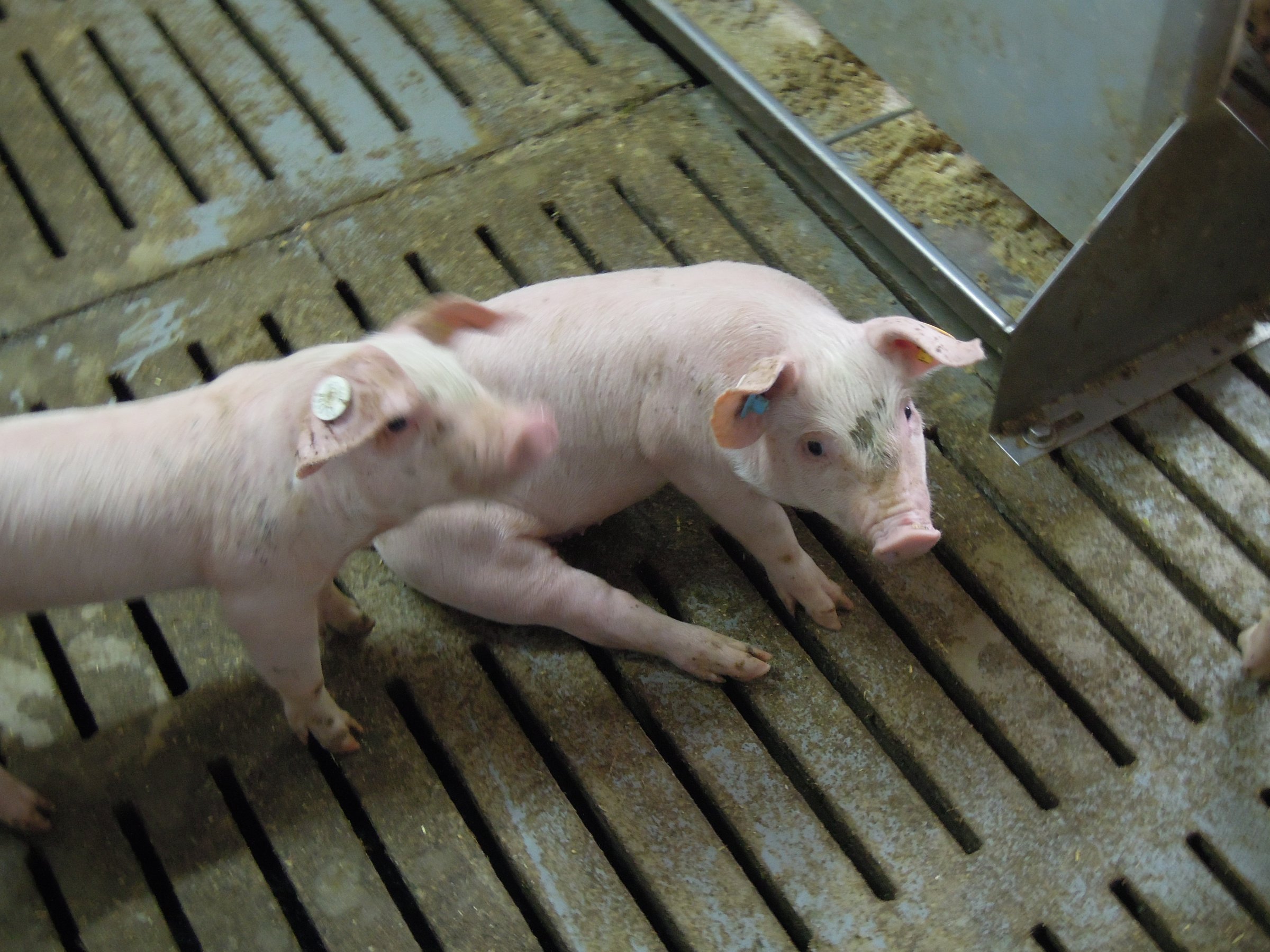 - Stark wedelnde Schwänze oder hängende, eingeklemmte Schwänze sind häufig ein Zeichen von Unbehagen oder Unzufriedenheit der Schweine. Ursächlich können gesundheitliche Probleme, aber auch nicht adäquate Umweltbedingungen infrage kommen.