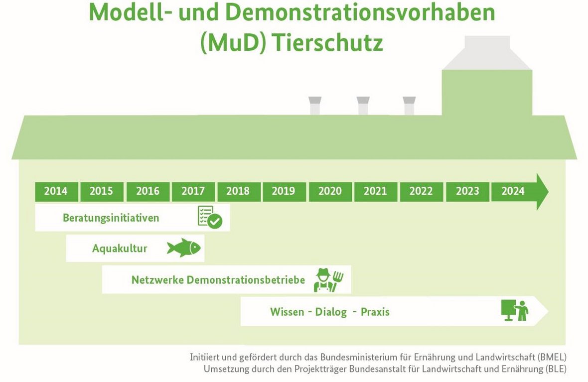 Die Projektförderung fußt auf der Richtlinie des Bundesministerium für Ernährung und Landwirtschaft (BMEL) zur Förderung von Maßnahmen zum Transfer neuer Erkenntnisse aus Forschungs- und Entwicklungsvorhaben (FuE-Vorhaben) in die landwirtschaftliche Praxis im Kontext der Modell- und Demonstrationsvorhaben Tierschutz für kleine und mittlere Unternehmen.