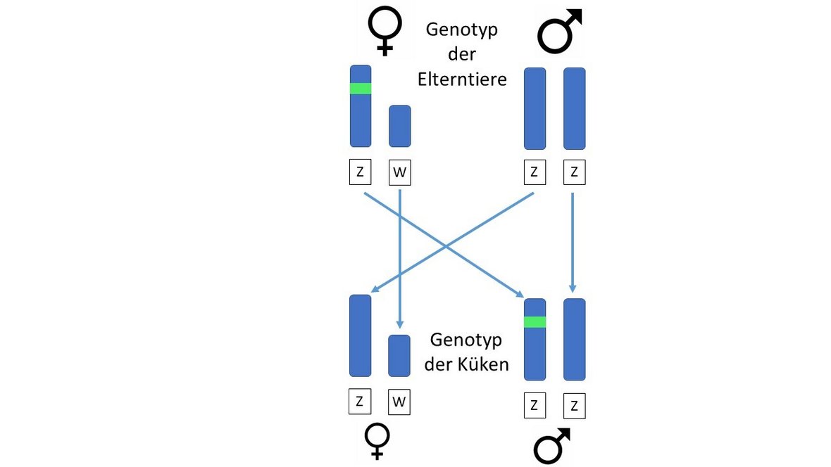 Im Vergleich zu Säugetieren haben sich die Geschlechtschromosomen der Vögel unterschiedlich entwickelt. Dadurch wird beim Geflügel die Ausprägung des Geschlechts über die Eizelle des Weibchens vererbt und nicht über das Sperma der männlichen Tiere. Eine Geschlechtsunterscheidung der Spermien, wie bei Rindern und Schweinen, ist dadurch nicht möglich8.