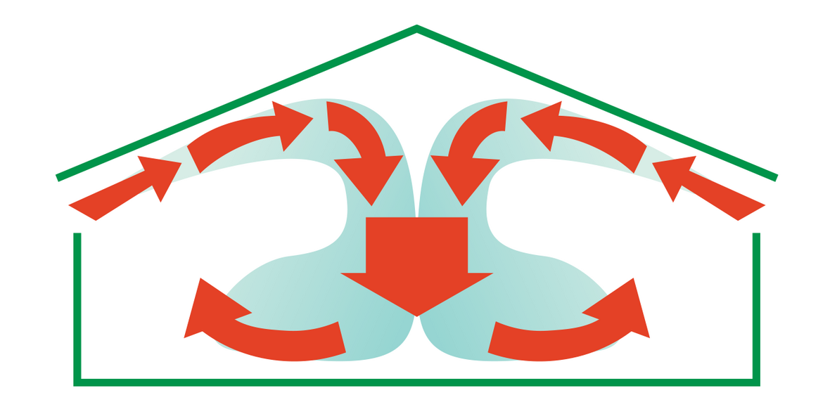 Eine gleichmäßige Tierverteilung ist nicht nur ein Indikator für die richtige Luftführung. Sie wirkt sich auch direkt auf den Luftstrom im Stall aus. Sammeln sich die Tiere in bestimmten Bereichen wie zum Beispiel zwischen zwei Futterlinien, kann die durch die Masthühner erwärmte Luft die Luftströmung stören und umlenken. Auch undichte Stellen im Stall haben einen ähnlichen Effekt und sollten darum geschlossen werden.