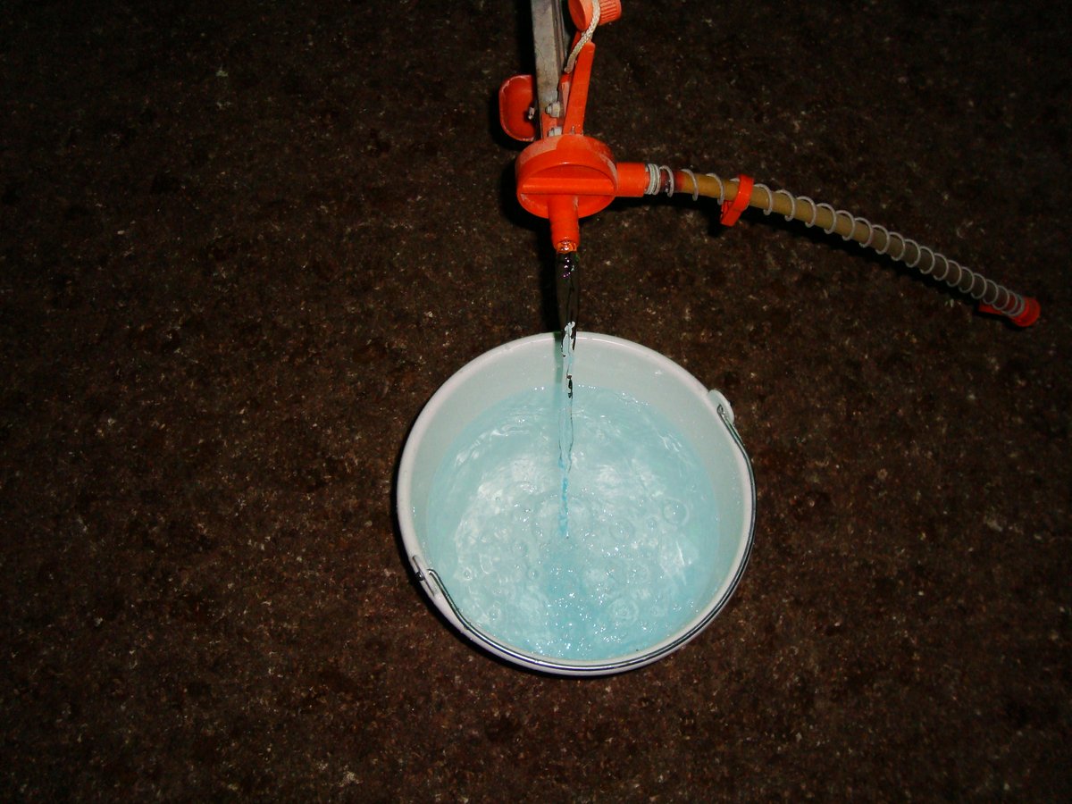 Um den Impfstoff nicht zu schädigen, ist eine sehr gute Wasserqualität sicherzustellen (Abbildung 1). Es empfiehlt sich daher den Impfstoff in Wasser mit Trinkwasserqualität oder ggf. sogar in destilliertem Wasser aufzulösen. Das Anmischen des Impfstoffes muss direkt vor der Verabreichung erfolgen, da die Impfstoffe nach dem Ansetzen nur eine begrenzte Haltbargeit von wenigen Stunden aufweisen.4 Zudem muss das Anmischen in einem sauberen Gefäß (Impfeimer) durchgeführt werden.