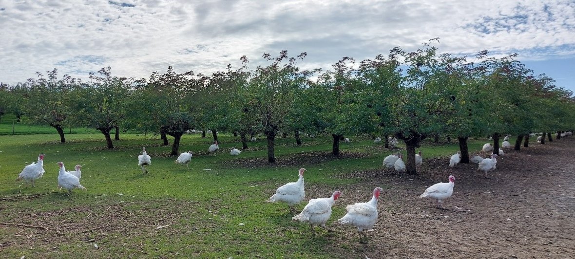 In der ökologischen Haltung von Puten muss den Tieren mindestens ein Drittel ihres Lebens Zugang zu einem Auslauf ermöglicht werden.