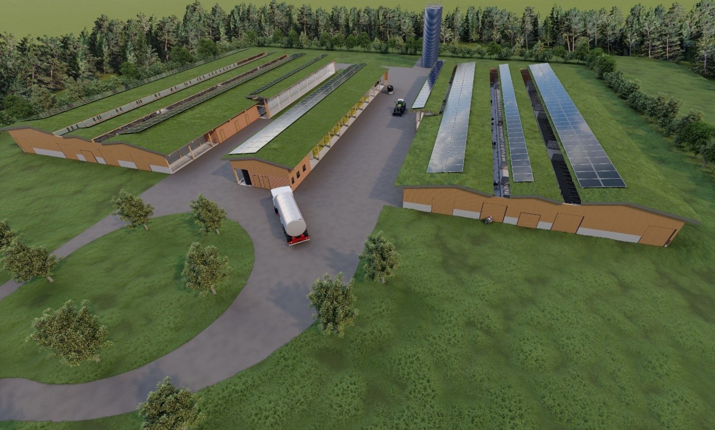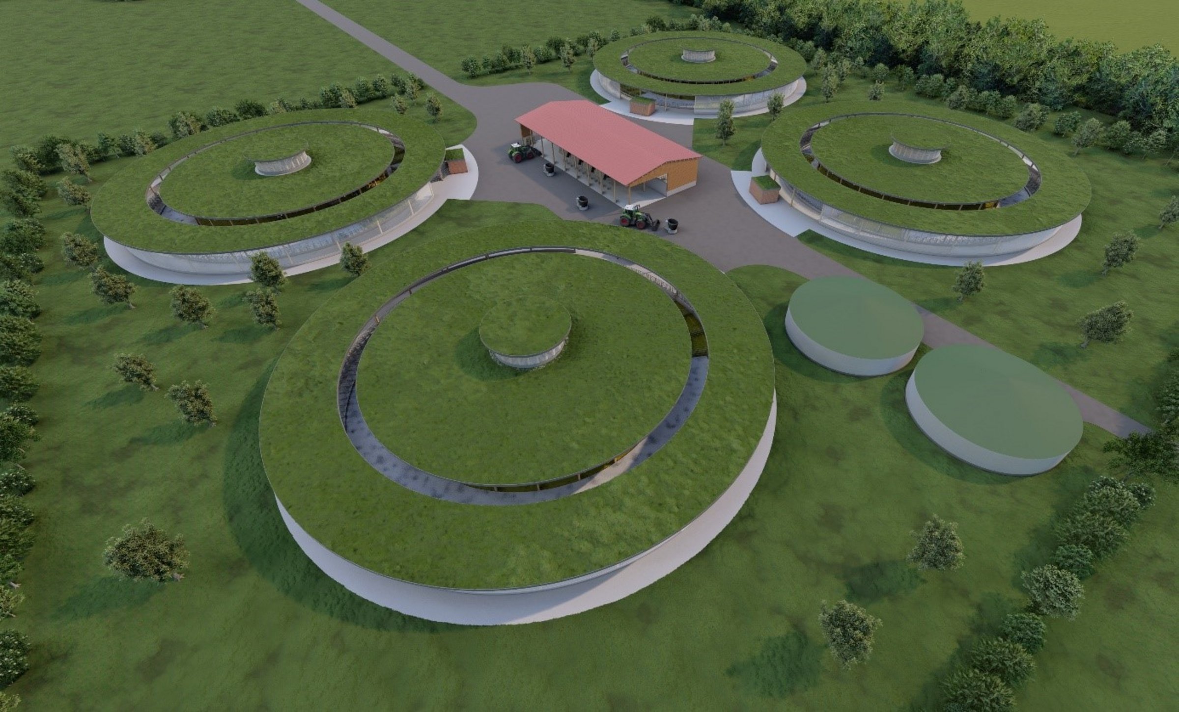Beim hier dargestellten Ökologiestall werden in erster Linie Aspekte rund um das Thema Umwelt berücksichtigt. Dieser visionäre Stall stellt somit die Ökologie in den Vordergrund und lässt Baukosten sowie Tierwohl außer Acht.
