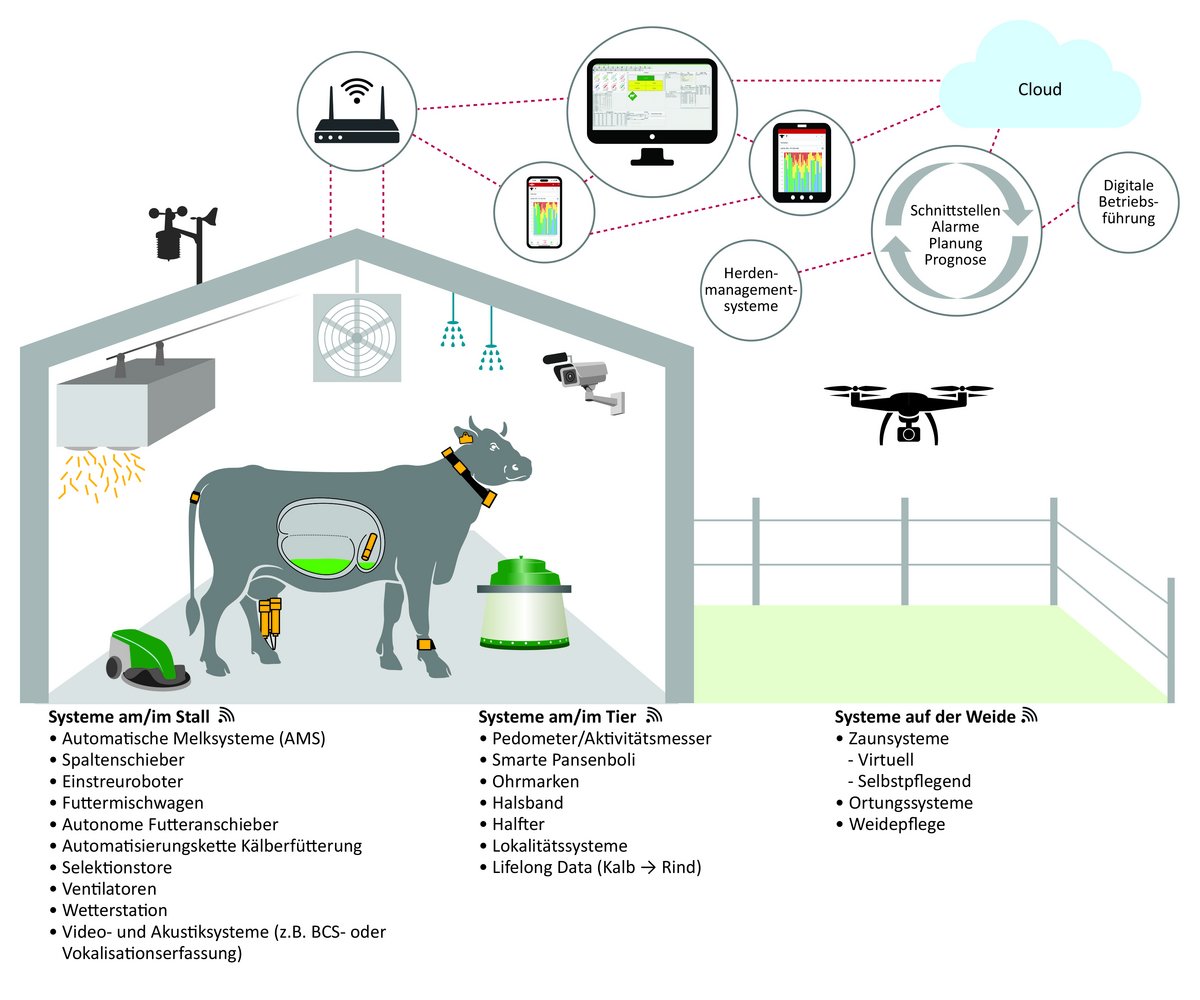 Die landwirtschaftliche Tierhaltung steht vor großen Herausforderungen. Die Digitalisierung bietet das Potential Landwirtinnen und Landwirte bei der Umsetzung einer tiergerechten, arbeitseffizienten und ressourcenschonenden Landwirtschaft zu unterstützen und zu entlasten. Dabei soll und kann die digitale Technik den Menschen keinesfalls ersetzen, sondern ihm als Entscheidungs- und Ausführungshilfe dienen sowie eine Arbeitserleichterung bieten.