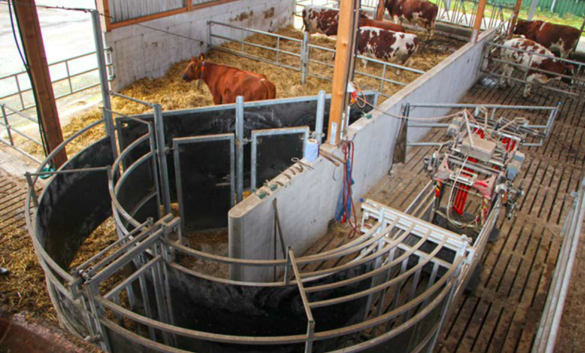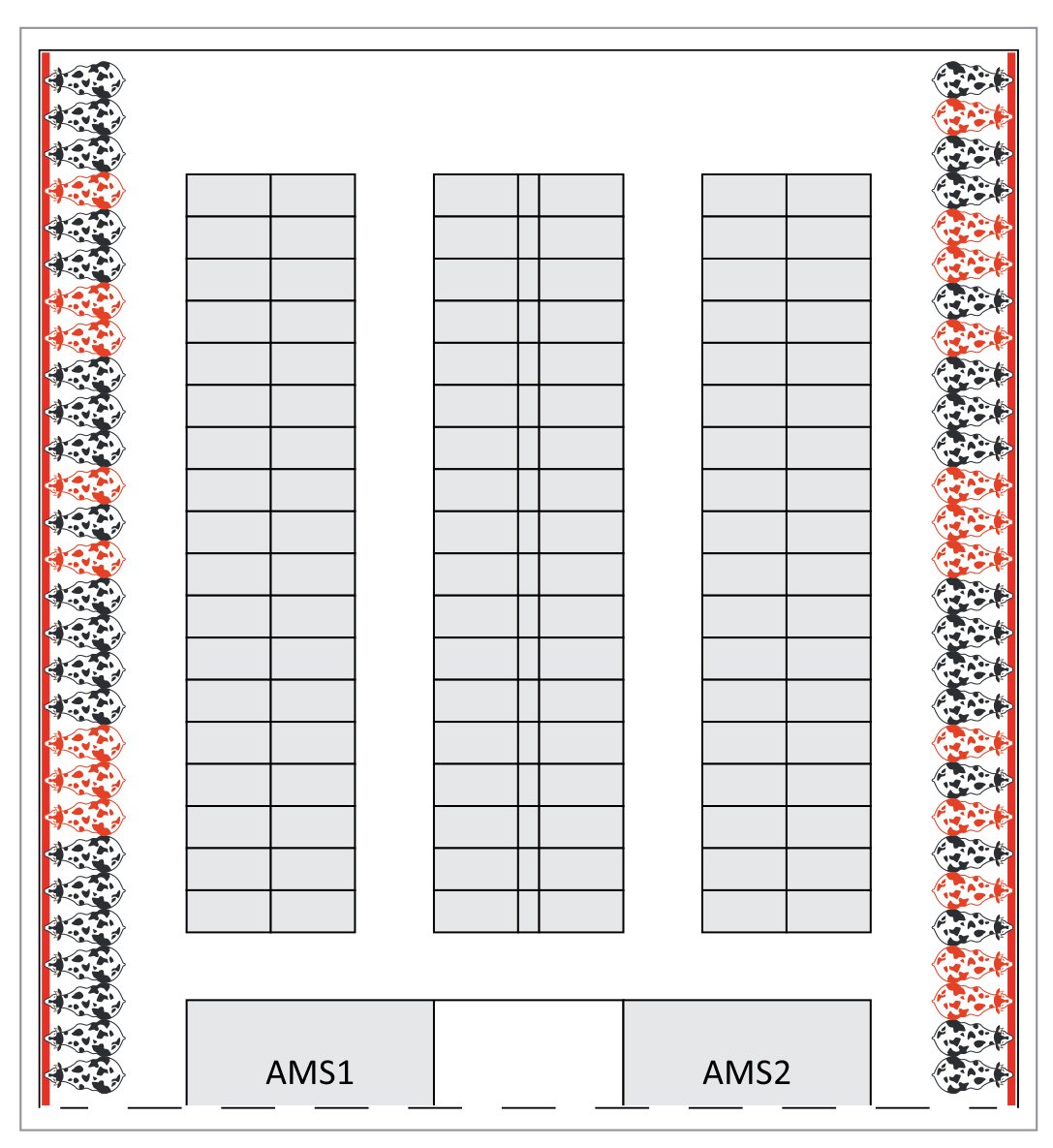 Wo immer möglich, sollte der Klauenpflegestand fest installiert sein. Zusammen mit der Zutriebseinrichtung, dem Vorwartebereich und dem Austriebsbereich stellt er eine funktionale Einheit dar. Für den Technisierungsgrad gibt es dabei keine abschließenden Empfehlungen – angepasst an die betrieblichen Gegebenheiten stehen alle Varianten offen. Die bauliche Nähe zur Separationseinrichtung (i. d. R. nach dem Melkstand / AMS) ist mit Blick auf Problemtiere sinnvoll. Da die Bereiche für kranke und frisch abgekalbte Kühe in kurzer Entfernung zum Melkbereich angeordnet sein sollten, bietet sich eine Anbindung daran an. Wird eine Kuh im Melkstand als behandlungsbedürftig identifiziert, sollte sie von einer Person auf kurzem Weg in den Klauenpflegestand geleitet werden können. Bei automatischen Melksystemen und auch in manchen Melkständen besteht die Möglichkeit, Tiere die separiert werden sollen, vorab auszuwählen. Bei Neubauten sollte der Standort des Klauenpflegestandes unter Berücksichtigung der genannten Aspekte bereits bei der Planung vorab festgelegt werden.