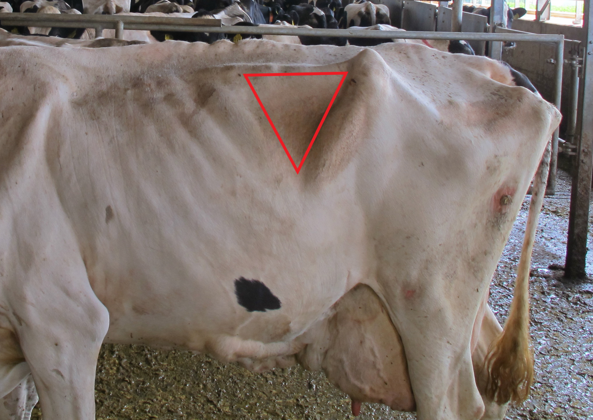hinter letzter Rippe ist die Hungergrube eine Handbreite oder sogar tiefer eingefallen