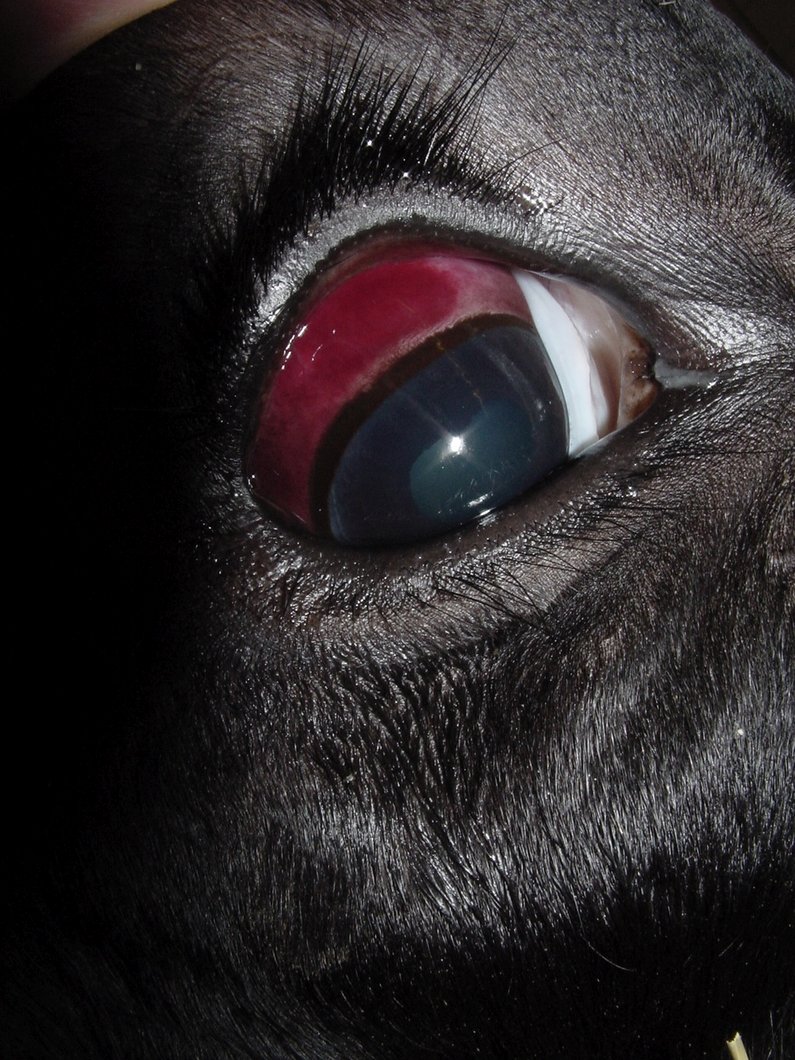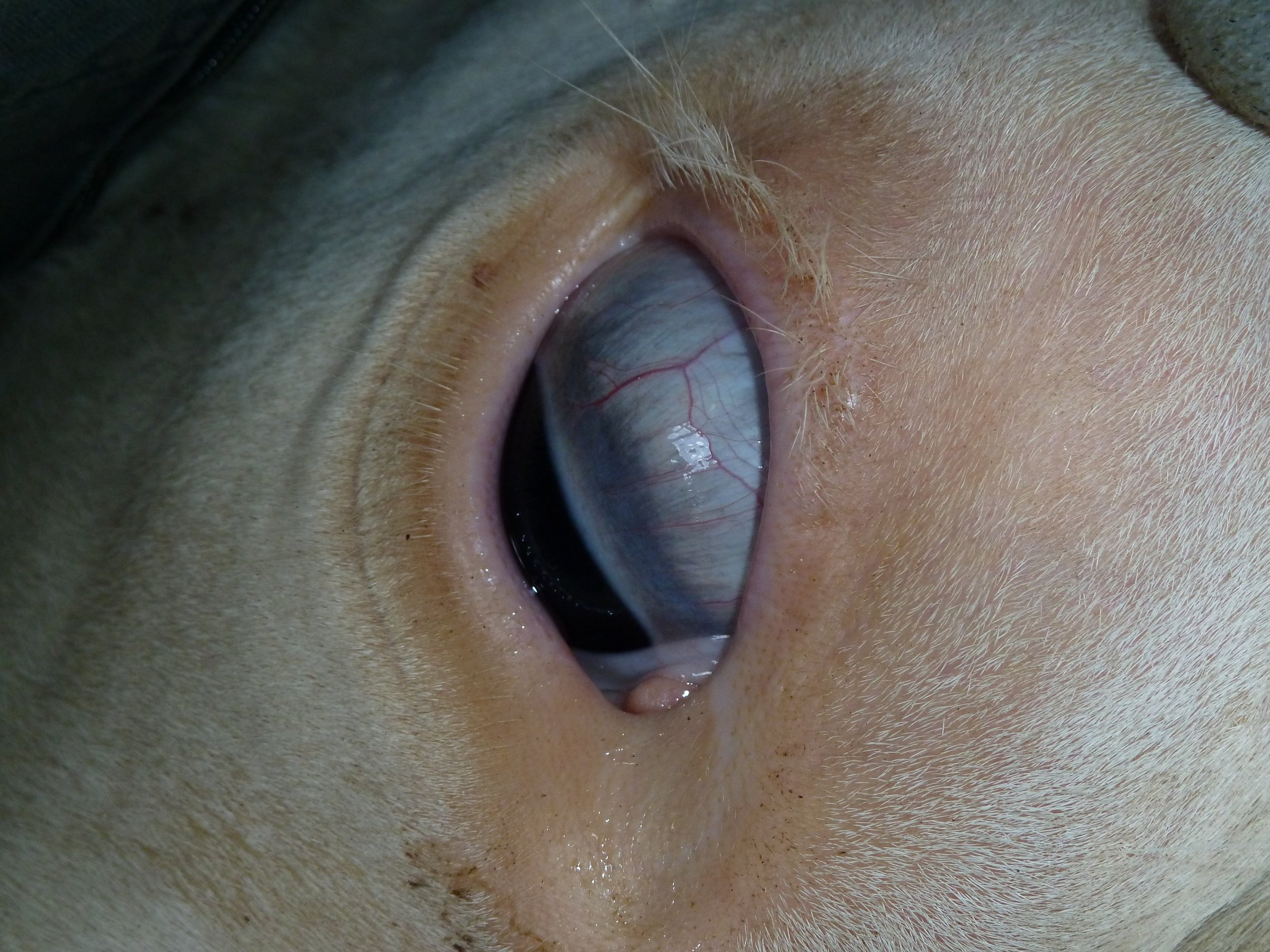 - Augenausfluss: klar, eitrig, Tränenstraße