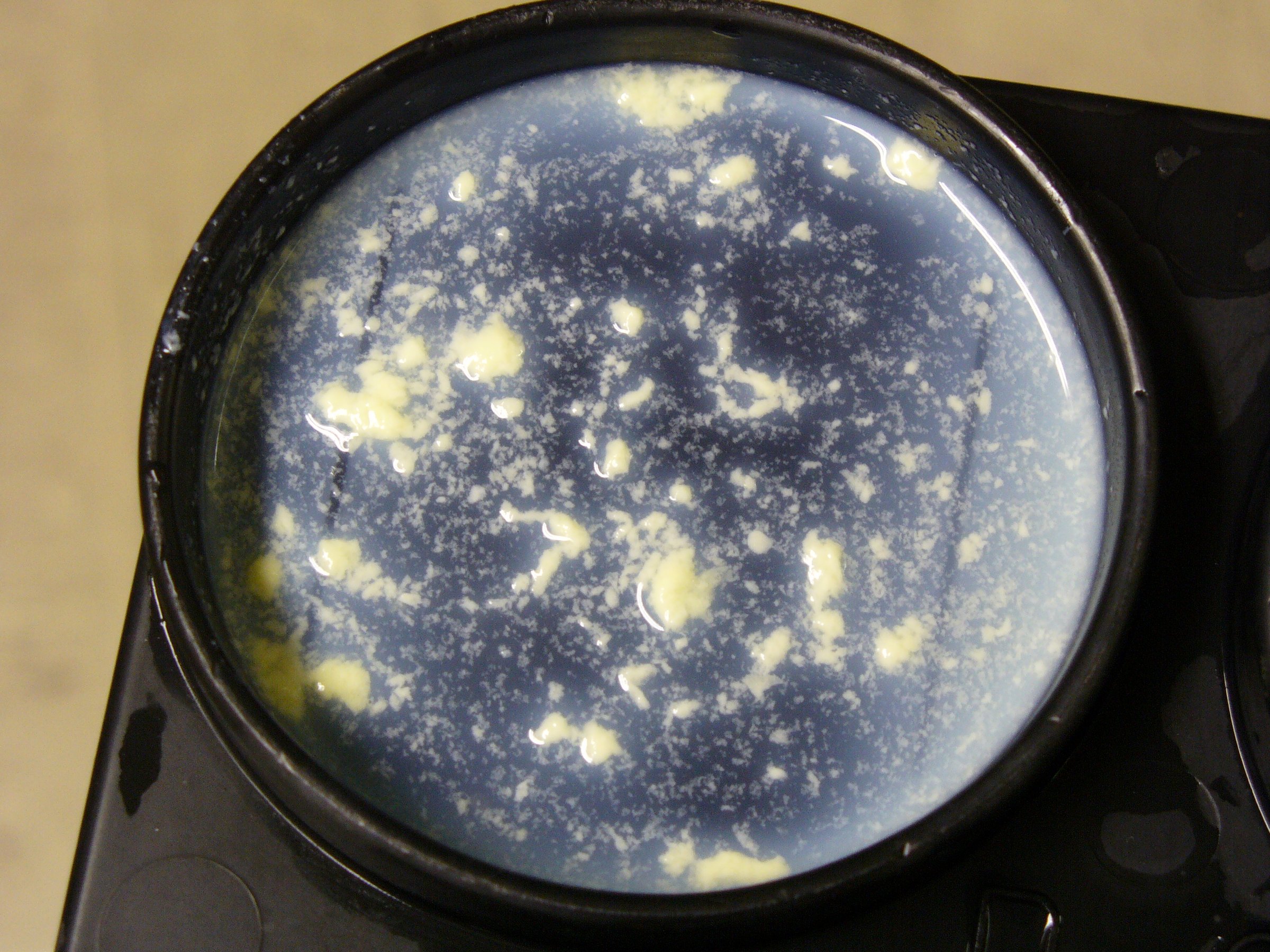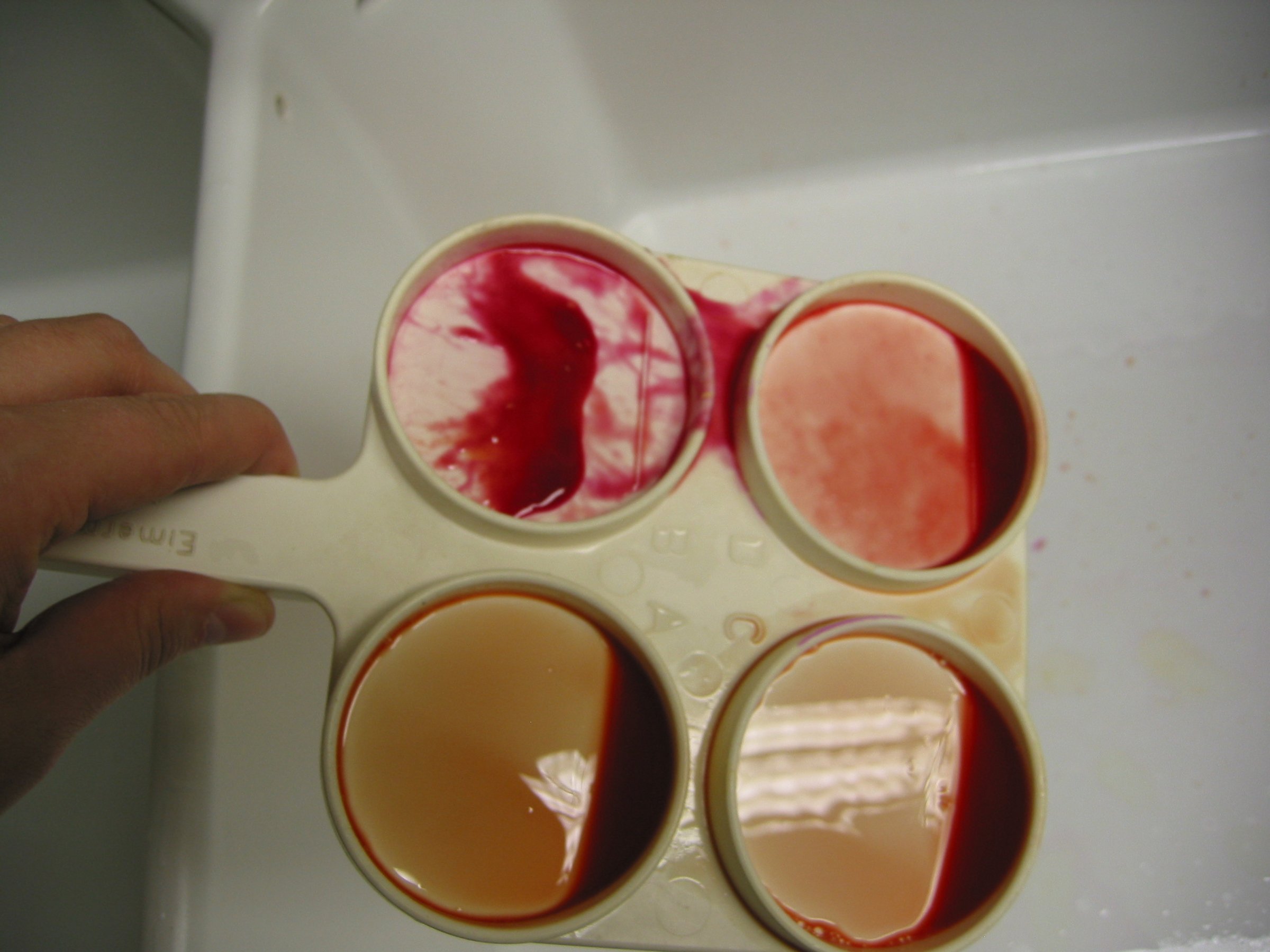 - Viskositätsveränderungen des Milch-Testflüssigkeitsgemischs (v. a. im Vergleich der Viertel untereinander)