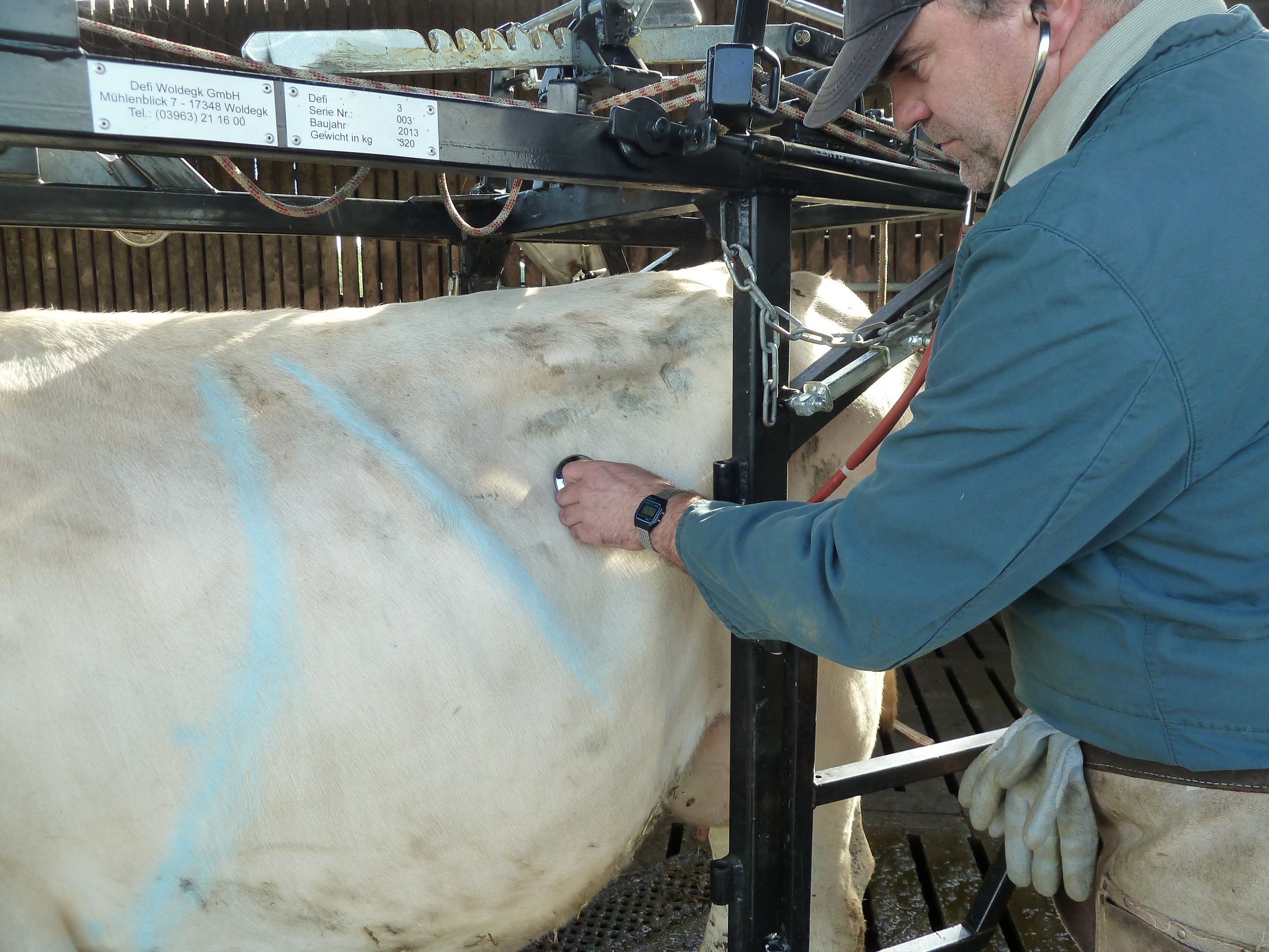 Betrachtung der Hungergrube (links), um zu erahnen, wie schnell der Nahrungsbrei den Pansen Richtung Labmagen verlässt