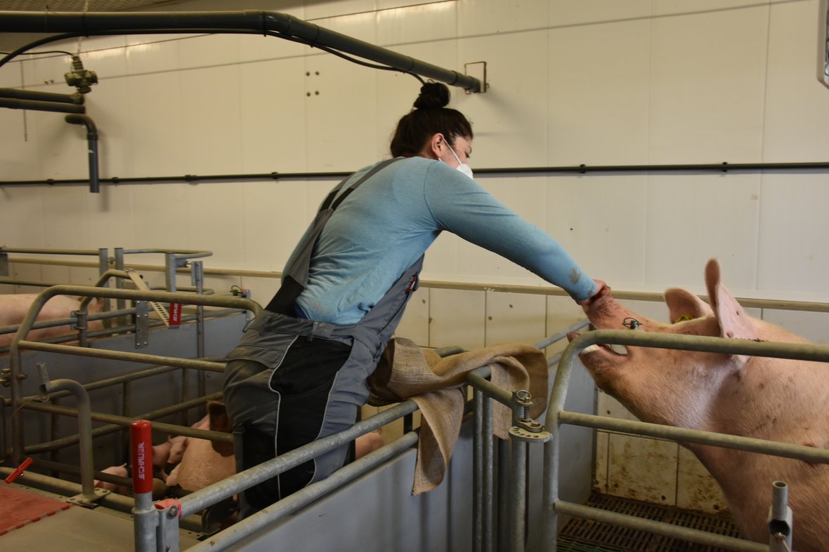 - "Ein sehr gutes Verhältnis zur Herde und regelmäßiger Berührungskontakt (z. B. Kopfkraulen) erleichtern die Arbeit – vor allem in der Abferkelung – enorm. Werde ich nicht als Gefahr wahrgenommen, so ist das Stresslevel der Sau geringer. Werden meine Berührungen als angenehm empfunden, erleichtert das z. B. eine Gesäugeuntersuchung sehr."