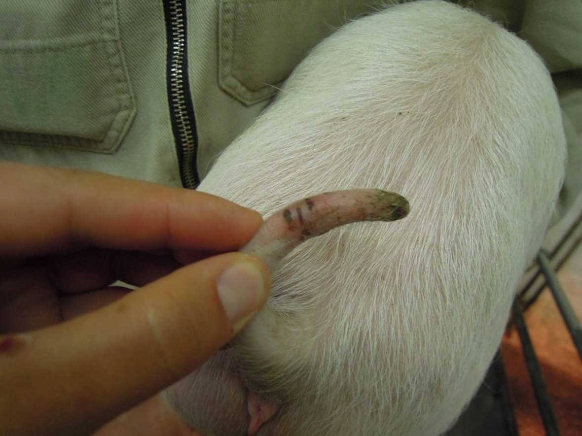 Die Erkennung von Schwanzläsionen und deren Schweregrad ist entscheidend für die richtige Einschätzung der Behandlungsnotwendigkeit. Eine regelmäßige Kontrolle der Tiere ist notwendig, um Verletzungen frühzeitig zu erkennen und entsprechend zu handeln. Daher sollte die Kontrollfrequenz bei den ersten Anzeichen eines Schwanzbeißgeschehens stark erhöht werden! Nur so können schwerere Schäden vermieden werden. Fiebermessen hilft, den Schweregrad von Verletzungen einzuschätzen. Außerdem trägt es dazu bei, eine Entscheidung in Bezug auf die weitere Behandlung, Schlacht- und Transportfähigkeit oder auch eine Nottötung zu treffen.