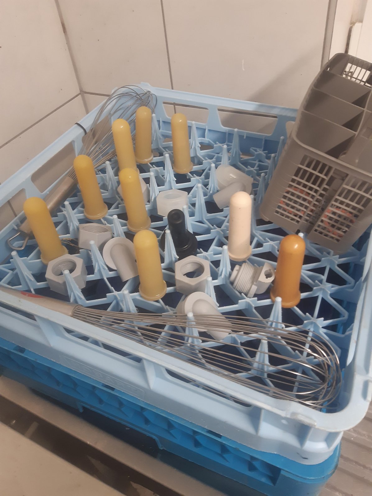 Eine tägliche sachgerechte Reinigung von Nuckeln, Tränkgeschirren sowie Wasser- und Futterschalen, um Milch- und Futterreste sowie Kotpartikel zuverlässig zu entfernen, liefert die Basis für ein geringes Infektionspotenzial. Drenchbestecke oder andere Hilfsmittel mit denen die Kälber direkt in Kontakt kommen, sind nach jedem Einsatz zu reinigen. Neben warmem Wasser, Bürsten und Spülmittel können auch z.B. handelsübliche Spülmaschinen für Nuckel oder andere Kleinteile sinnvoll zum Einsatz kommen (Abb. 11).