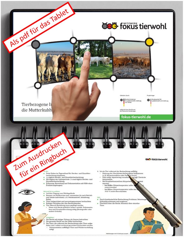 : This document was developed as part of the joint project ‘Netzwerk Fokus Tierwohl’ (Funding codes 28N419TA01 to 28N419TA17) by the ‘Suckler Cow’ working group of the Centre of Excellence for Cattle Welfare and was adapted for methodological and educational purposes by DLG e.V.